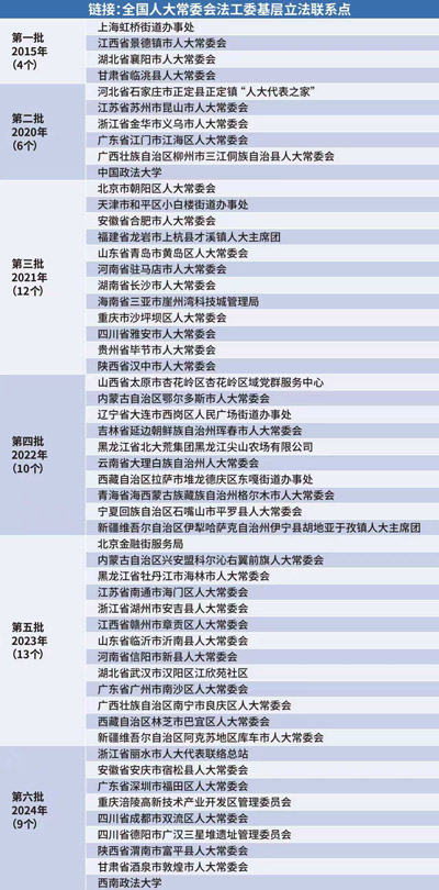 2020年7月,《工作规则》首次修订,通过丰富联系点形式、强化辐射功能,基层立法联系点进入扩容提质的快车道。截至目前,全国人大常委会法工委设立54个基层立法联系点,实现全国31个省(区、市)设点全覆盖。