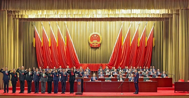 新当选的市人大常委会副主任、市监察委员会主任、市人大常委会委员、有关专门委员会主任委员进行宪法宣誓。
