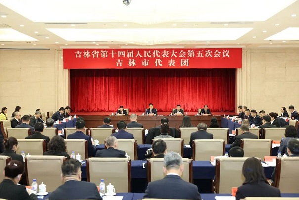 省十四届人大五次会议吉林市代表团联组会议现场。